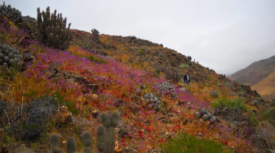 Gracias a las abundantes lluvias de invierno y a las bajas temperaturas, miles de semillas y bulbos latentes lograron germinar, dando vida a un paisaje excepcional. En la región ya es posible observar flores en sectores de la costa de Caldera y Huasco, así como en los interiores de Vallenar y Copiapó, donde se extienden grandes mantos que tiñen de tonos rosados y blancos la aridez del desierto.